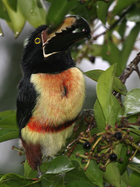 Toucan feeding naturally. This is a toucan we saw out of our window at the third hotel we stayed at. This toucan is one of the three toucans in Costa Rica. I thought it was really cool to see a toucan feeding naturally.